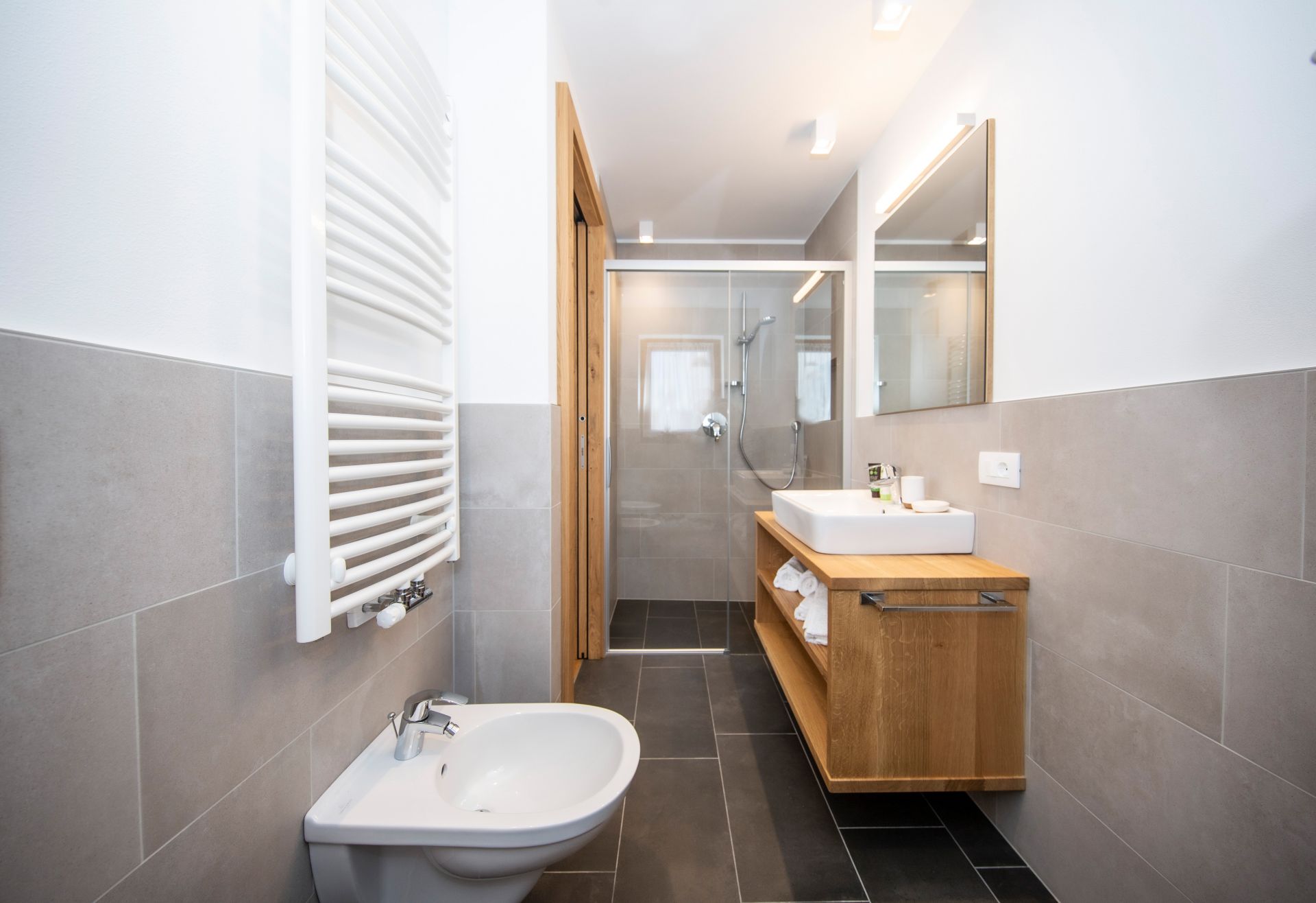 L’appartamento Alpenrose si trova al primo piano e dispone di due stanze matrimoniali, due bagni spaziosi, una cucina attrezzata con un luminoso soggiorno. Nel soggiorno si trova un divano letto singolo e, su richiesta, è possibile aggiungere un letto singolo supplementare in una delle due stanze. A disposizione dell’appartamento c’è il giardino privato della casa.